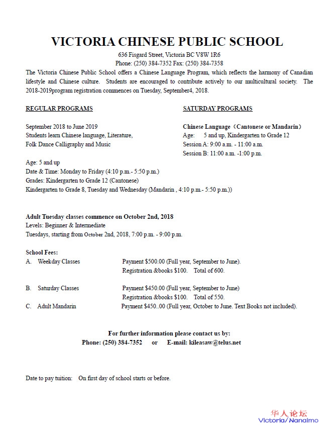 报名啦 -维多利亚中文学校 - 百年历史,教书育人