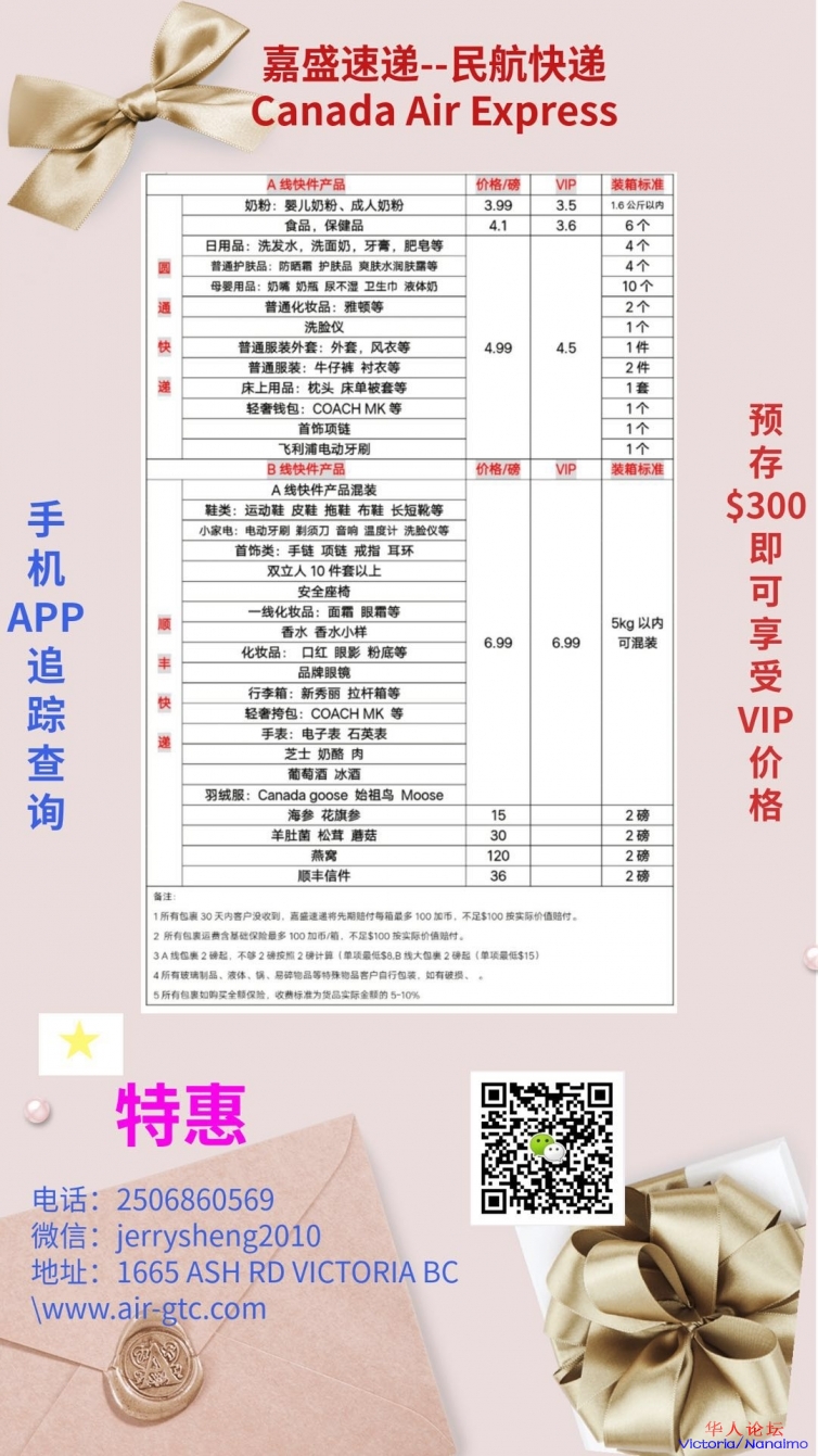 嘉盛速递 直邮中国 2磅起