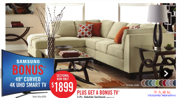 即日起购买限定沙发,赠送价值999三星曲屏4K UHD TV 。: C, m; V: D; Q3 ~0 b7 N. D