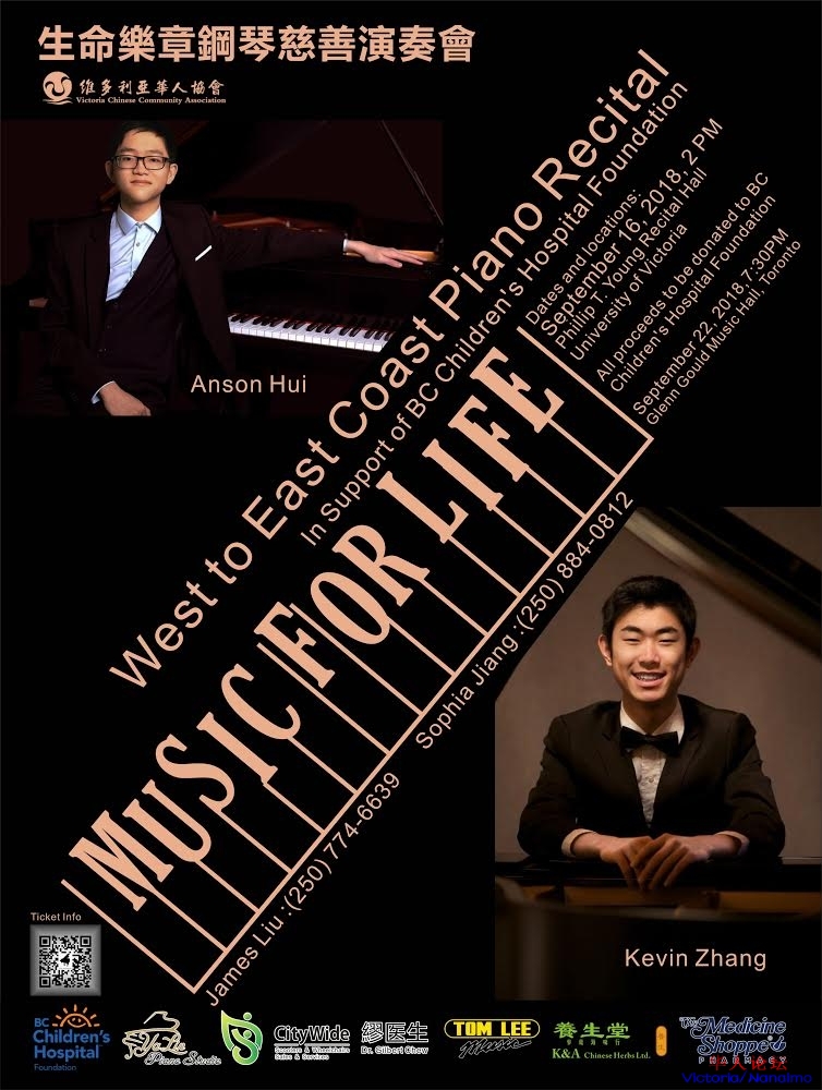 点,他将在维多利亚举行生命乐章慈善音乐晚会,他将自己承担所有的旅途费用,并且音乐会所有的收入,直接捐献给维多利亚儿童医院。购票也是只需到BC