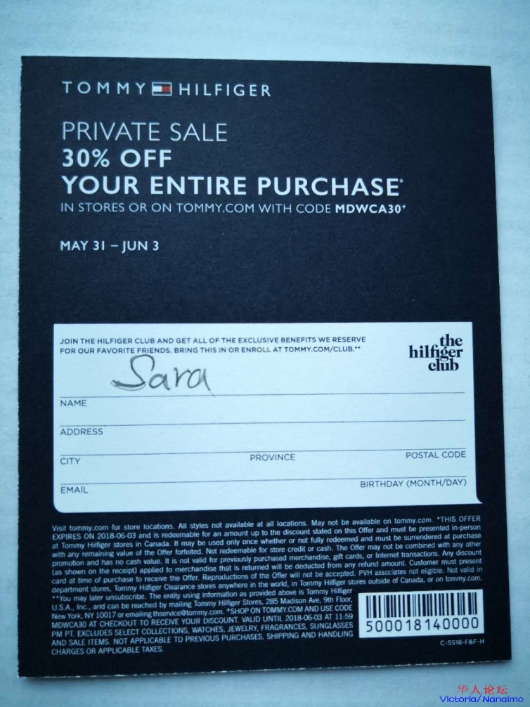 5.31-6.3, 四天private sale, 全店在原有折扣基础上再 7 折, 没有最低消费,买任何东西都可以,有需要的可以自取图片, 买单时需要地址:millstream village shopping centre